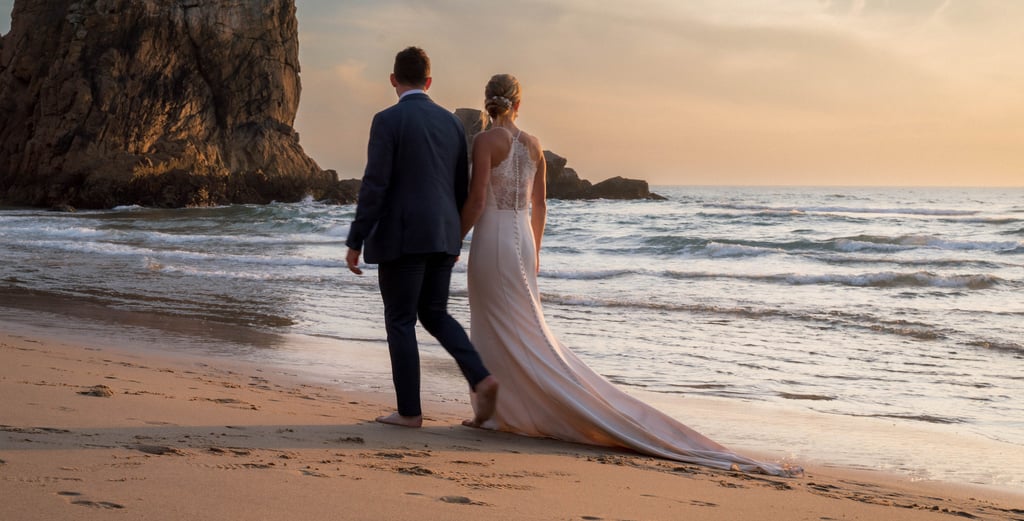 Choosing to organise your elopement in Portugal, particularly at Praia de Ursa, allows you to enjoy a breathtaking view of the sunset over the Atlantic Ocean.