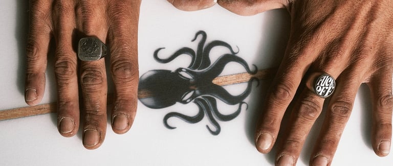 Dans cet atelier, Ericeira Custom conçoit et façonne ses propres planches de surf. Forte de 25 ans d'expertise, cette marque est solidement établie au sein de la communauté surf au Portugal. Quelle belle opportunité de mettre en lumière ce travail, des shortboards ultra performants et réactifs aux longboards destinés aux vagues tranquilles, tout est fabriqué à la main avec passion.