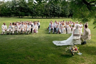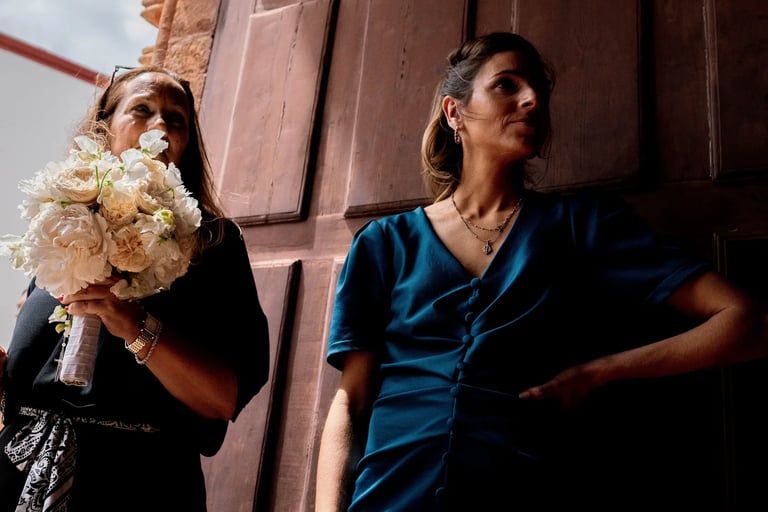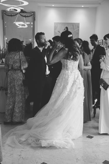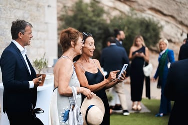 Si vous le souhaitez, c'est aussi le timing parfait pour des photos de groupe ou des portraits posés de vos invités. Je m’efforce de rendre ces moments détendus tout en restant fidèle à l’esprit de convivialité du vin d'honneur. Ces images sont l'occasion de garder des souvenirs précieux avec tous vos proches.