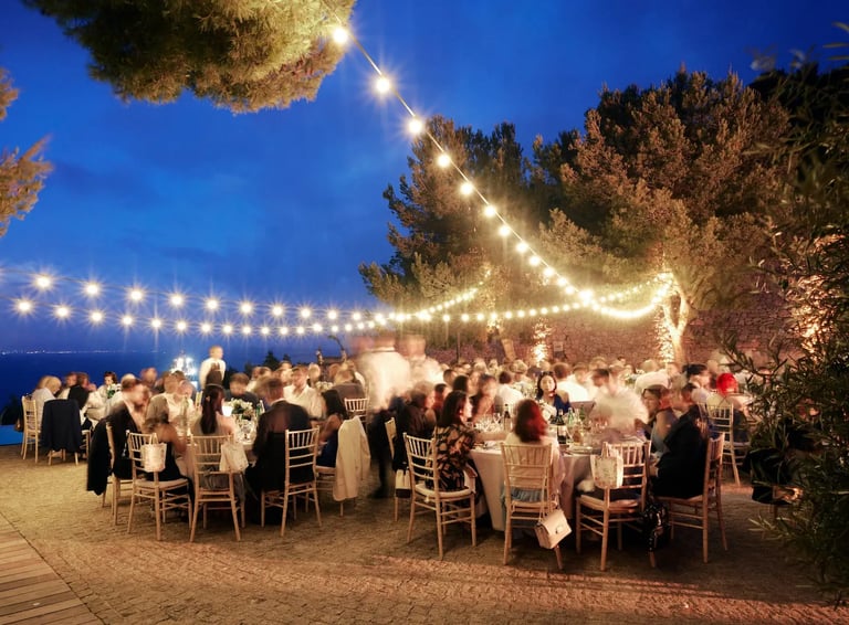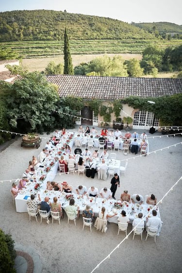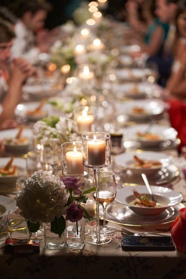 Pendant le dîner, je me concentre sur l’atmosphère chaleureuse qui se dégage autour de chaque table et de chaque groupe d'invités. L'objectif est de capturer des images qui racontent une histoire authentique : la vôtre, en compagnie de vos proches, avec des moments naturels et sincères