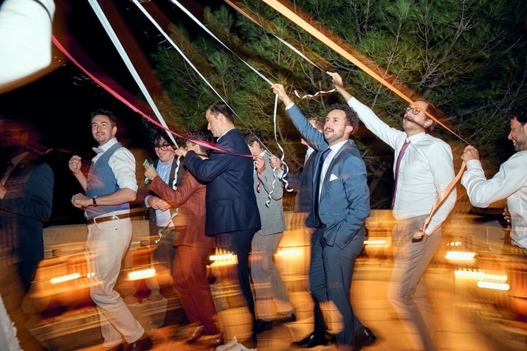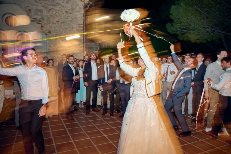 Quand la soirée commence, je m’attache à capter l’énergie et la joie des festivités à travers des compositions dynamiques. C’est le moment idéal pour des photos lifestyle, plus détendues et pleines de fun ! Mon objectif est de photographier ces instants spontanés et de restituer toute la vivacité de votre soirée sans artifices.