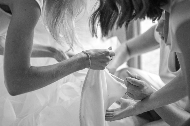 Je capture vos plus beaux moments lors de vos préparatifs. Que ce soit la lumière douce illuminant la robe suspendue, les sourires échangés avec vos proches ou les petits instants d’excitation avant la cérémonie, je m'attache à saisir ces scènes authentiques. Les rires, les regards furtifs, les derniers ajustements… Ces images servent de merveilleux souvenirs de l'excitation qui précèdent la grande célébration.