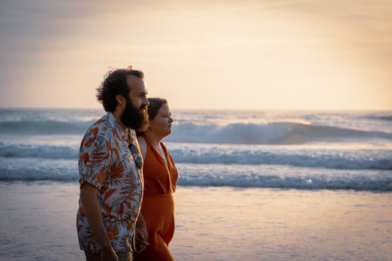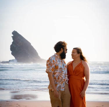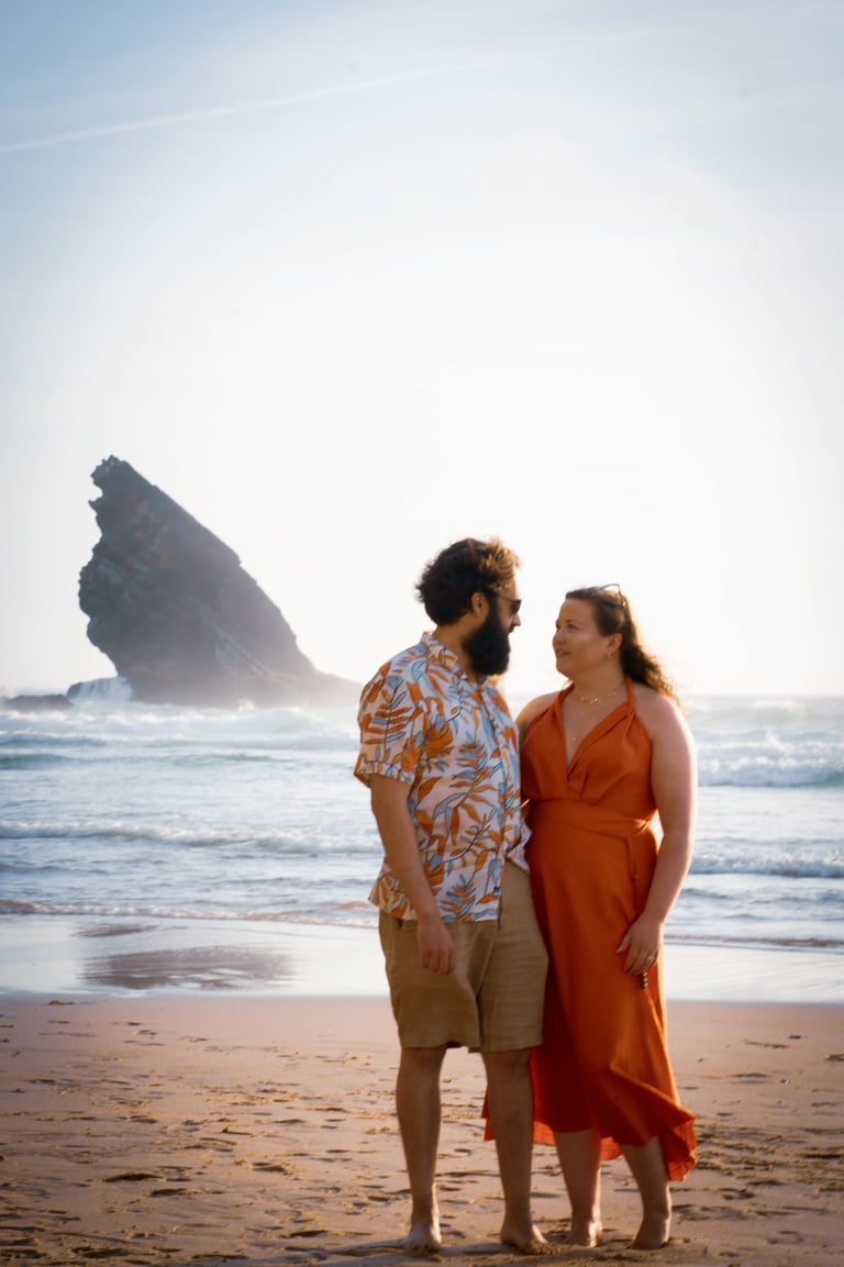 This is a wild beach tucked along the coast near Lisbon, which offers a dreamy landscape of rugged cliffs, golden sands, and the vast Atlantic Ocean. The sun was on its descent, painting the sky with hues of orange and pink, setting the stage for a romantic evening. The natural beauty of the location added a touch of magic.