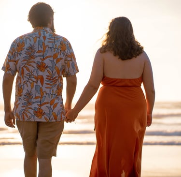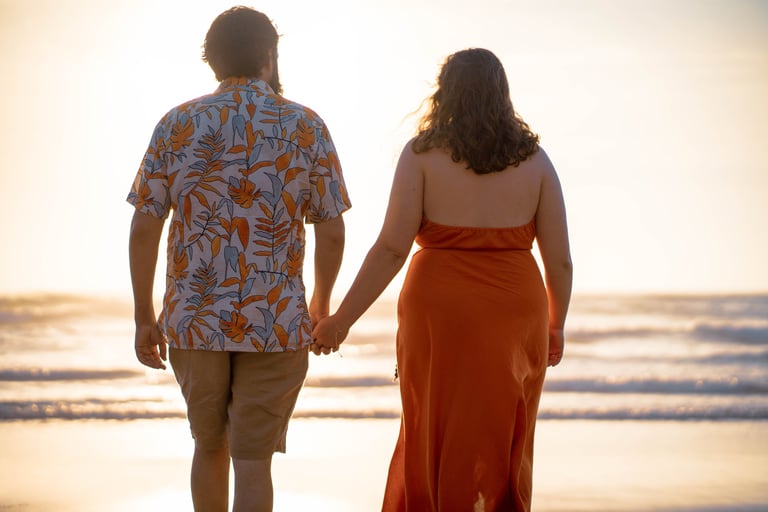 As the sun dipped lower on the horizon, we began the session, allowing the couple to embrace the romance of the hour. The golden light bathed the beach and cliffs,